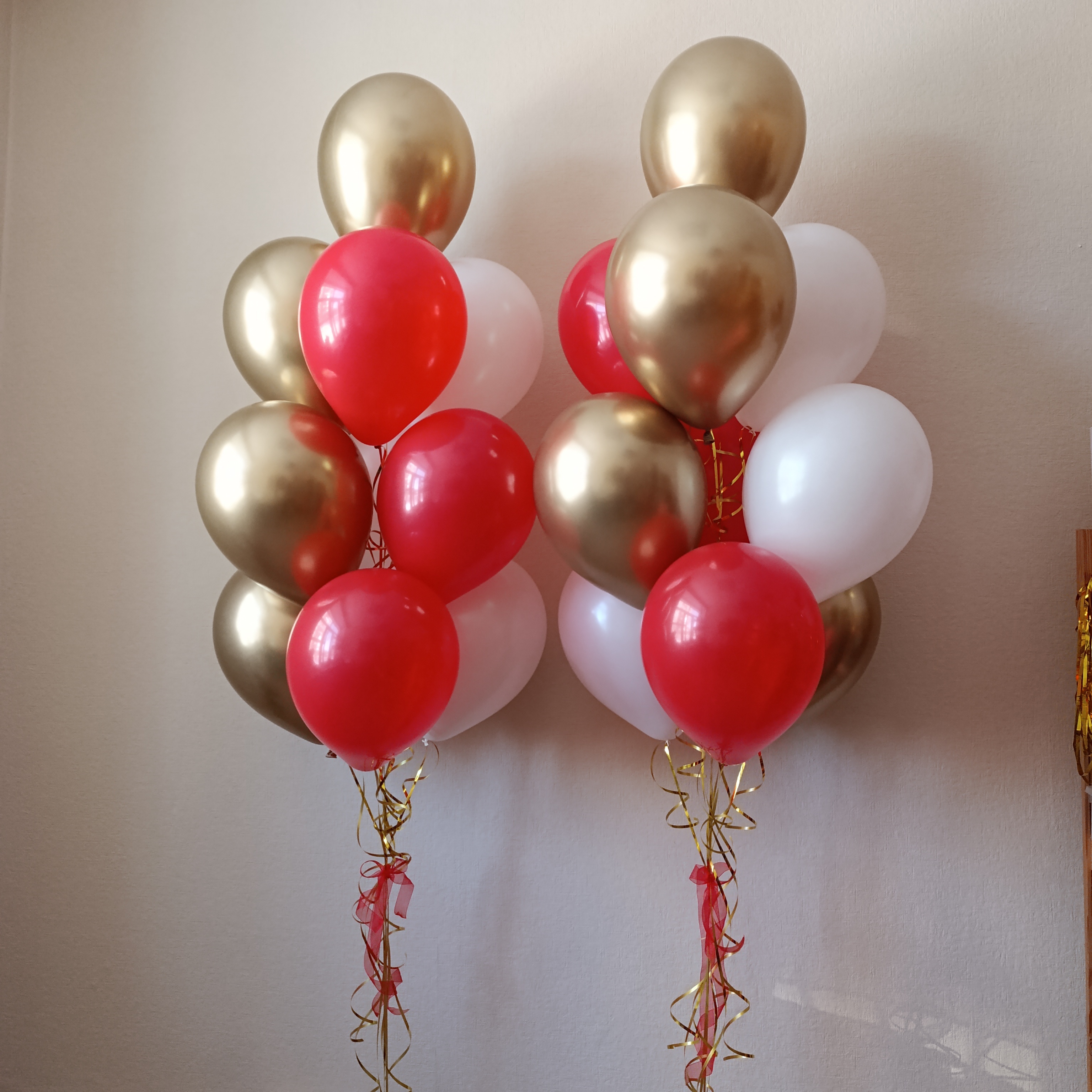 Фонтан из 3 красных, 3 белых, 4 золото хром шаров