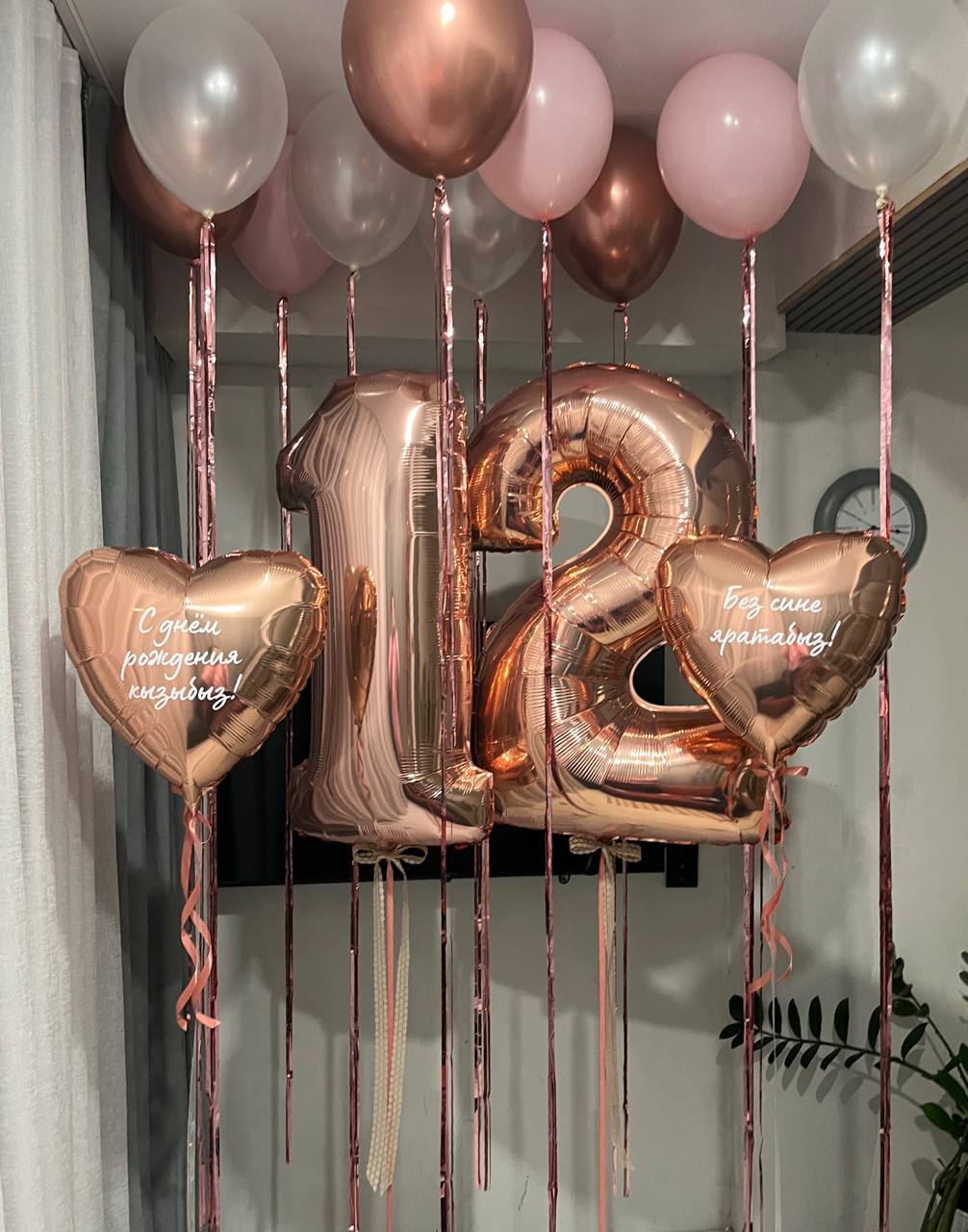 10 шаров в потолок на дожде ( 3 хром,4 жемчужные,3розовые пастельные)