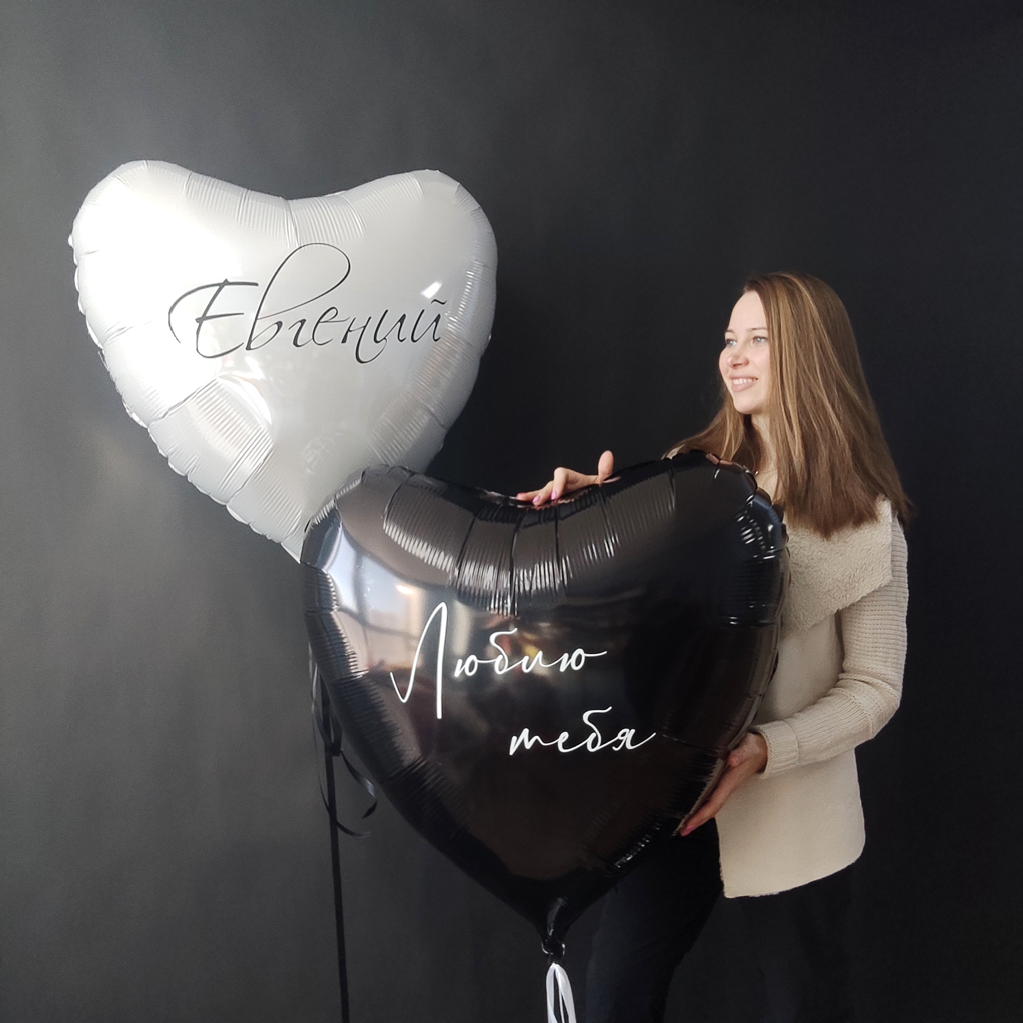 2 сердца гелиевых 91 см с индивидуальными надписями