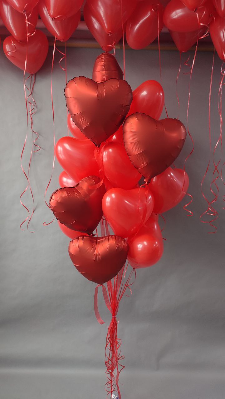 14 латексных сердец и 5 фольгированных сердец на ленте-органзе